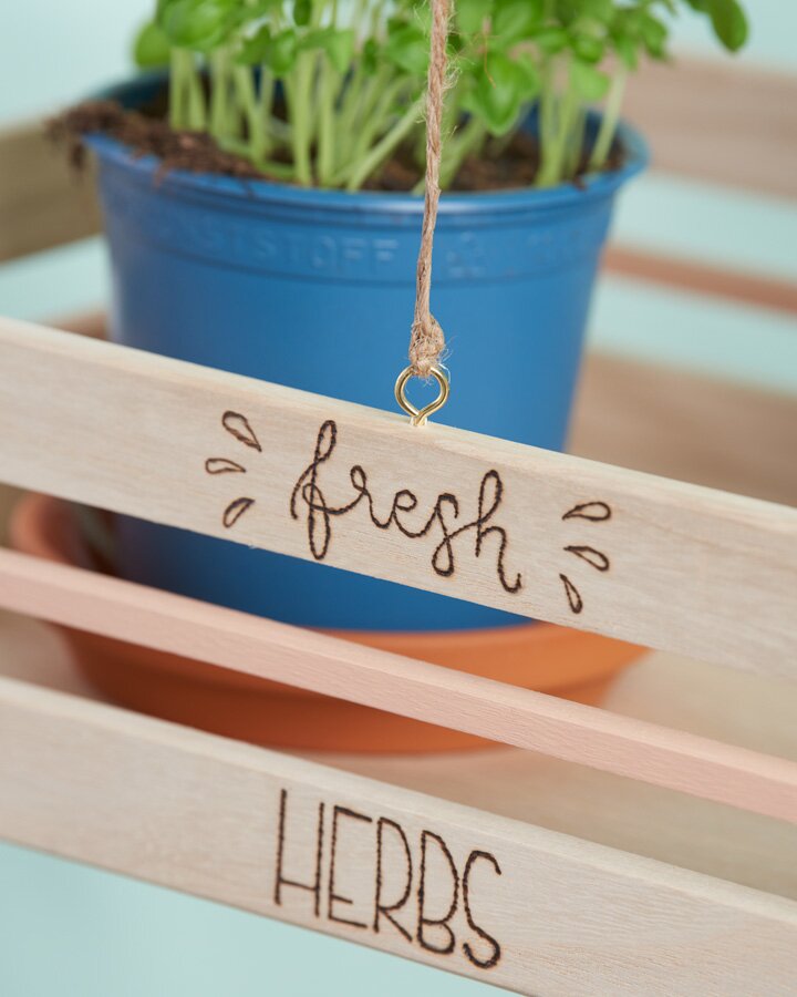 Do indywidualnego etykietowania na wiszących tacach nadaje się kreatywny projekt z brandingiem.