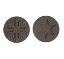 Dwie wspaniałe wkładki reliefowe wykonane z naturalnej gumy, odpowiednie do wszystkich projektów formowania. Po jednym motywie z płatkiem śniegu i gwiazdą. Oba motywy mają średnicę 3 cm.