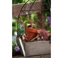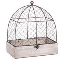 Ta urocza woliera to połączenie drewna, przecieranej szarości i metalu w kolorze antycznego brązu. Metalową kratkę można złożyć, co ułatwia udekorowanie woliery. Ładna ozdoba o nostalgicznym wyglądzie. Ozdobiona kwiatami, lampkami świątecznymi lub innymi dekoracjami ogrodowymi, klatka ta wspaniale przyciąga wz rok w domu lub ogrodzie.