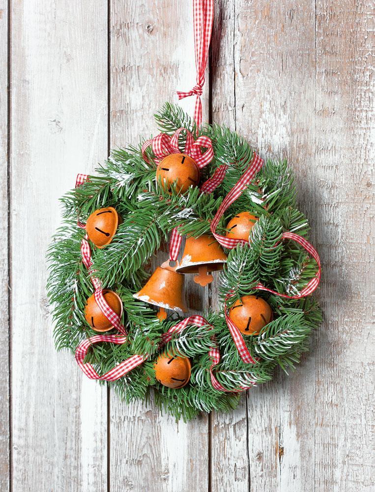 Nadaj swojemu wieńcowi nowy wygląd, ale pozostań wierny Bożemu Narodzeniu. Dzwonki i dzwoneczki są wykonane z akrylowych kulek i dzwoneczków. Pomaluj je rdzawym kolorem i dekoracyjnym śniegiem. Najlepiej zrobić to za pomocą gąbek malarskich. Czarne "szczeliny" narysowane równomiernie na bombkach czarnym markerem permanentnym nadadzą bombkom "dzwonkowy" kształt. Idealny wygląd uzyskasz dekorując wieniec ozdobną wstążką, którą możesz również zawiązać jako wstążkę do zawieszenia.