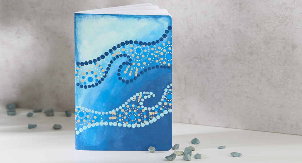Kolorowy notatnik jest najpierw projektowany z gradientem kolorów przy użyciu farby rzemieślniczej. Można to zrobić szybko i łatwo, nakładając kolor za pomocą gąbki do malowania ruchem mieszającym.