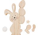 Stojąca figurka wykonana z drewna MDF jest idealna na parapet, komodę, półkę lub postawiona na tacy . Królik świetnie sprawdzi się również jako element wieńca na drzwi lub wschodnia ozdoba . Przy wysokości 14 cm i szerokości 8,5 cm, przyciąga wzrok i może być łączony na wiele sposobów. Szczególna atrakcja: okleina nadaje królikowi naturalny wygląd i szczególnie wysoką jakość