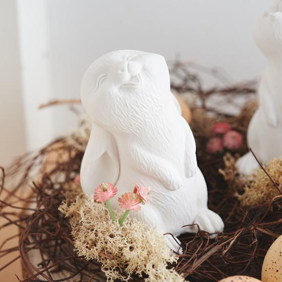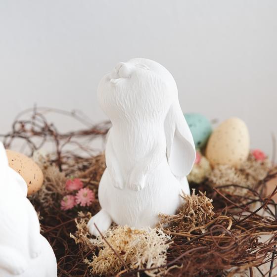 Teraz nadszedł czas, aby umieścić domowe króliczki na przygotowanej płycie dekoracyjnej. Proszę użyć mocnego kleju, aby utrzymać je bezpiecznie na miejscu.