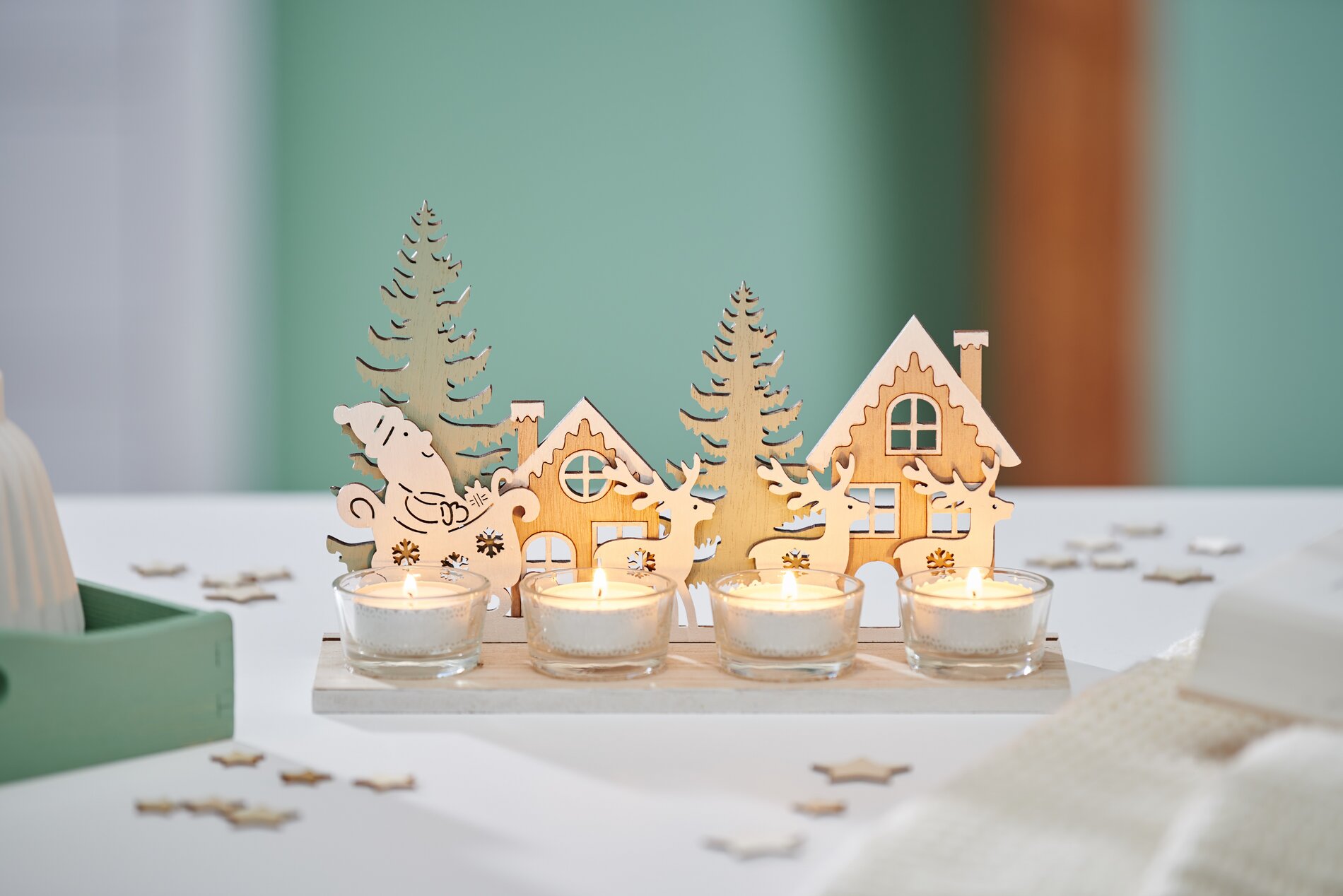 Najpierw pomaluj poszczególne części podstawki na tealight wybranymi przez siebie kolorami. W naszym przykładzie zdecydowaliśmy się na kolory skandynawskie, ale wybór kolorów zależy wyłącznie od Ciebie.