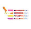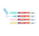 Zestaw 4 markerów kredowych edding 4085 w harmonijnie dobranych kolorach do nietrwałego pisania na gładkich powierzchniach, takich jak ciemne tablice kredowe, szkło, szyby okienne i lustra. Cienka okrągła końcówka o szerokości linii ok. 1-2 mm umożliwia precyzyjne znakowanie. Płynną kredę można ponownie zetrzeć wilgotną ściereczką.