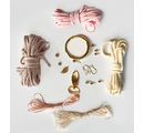 Ekskluzywny zestaw biżuterii makramowej "With Love" (róża/natura) zawiera materiały i instrukcje do wykonania 5 elementów biżuterii makramowej.