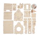 Drewniany zestaw konstrukcyjny jest wykonany ze sklejki i jest bardzo łatwy w montażu i klejeniu (klej rzemieślniczy nie jest dołączony). Nasza rada: pomaluj drewniane części różnymi kolorami rzemieślniczymi i połącz gotowy zestaw z dekoracyjnym śniegiem i miniaturami , takimi jak drzewa i figurki, aby stworzyć nastrojową scenę.