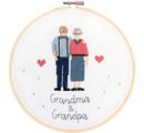 Zestaw do haftu Rico Design "Figurico Grandma & Grandpa" zawiera wystarczającą ilość materiału na bardzo spersonalizowany haftowany obrazek o średnicy ok. 20 cm.