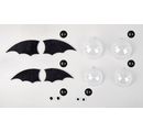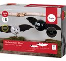 Świetny zestaw do majsterkowania "Nietoperze" dla 5 nietoperzy. Zawiera 2 nietoperze o długości ok. 27,6 cm i 3 nietoperze o długości ok. 23,9 cm. Specjalną cechą są ruchome oczy z efektem nocnego światła. Świecenie w ciemności oznacza, że ruchome oczy ładują się w świetle i świecą, gdy robi się ciemno. Instrukcje znajdują się na opakowaniu. Potrzebny będzie również klej rzemieślniczy, markery w kolorze czarnym i białym oraz farba rzemieślnicza w kolorze czarnym.
