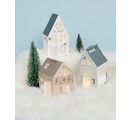 Gotowe domki można wspaniale udekorować na parapecie, komodzie, półce lub na stole . Na tacy, w połączeniu z małymi choinkami i dekoracyjnym śniegiem, można w mgnieniu oka stworzyć podświetlaną dekorację na sezon świąteczny i zimowy.