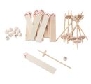Zestaw rzemieślniczy VBS "Drewniane narty duże" z 30 częściami. Narty mają wymiary 9,5 x 1,5 cm i grubość 5 mm. Po jednej stronie nart narysowana jest czerwona końców ka. Zestaw składa się z 10 nart, 10 patyczków i drewnianych krążków, 10 drewnianych kulek. Zestaw jest wykonany z drewna i może być wykończony farbami rzemieślniczymi.