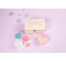 Ten wspaniały zestaw glinki perłowej jest dostępny w różnych kombinacjach kolorystycznych. Otrzymają Państwo 3 puszki po 25 g każda z kolorowymi styropianowymi koralikami i 1 puszkę 38 g z masą modelarską Pearl Clay.