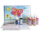 Otrzymają Państwo 8 odcieni, 1 czarny kolor konturowy i 1 kolor nocnej poświaty w butelkach z wkładką o pojemności 80 ml , wszystkie dostosowane do wiosennych pomysłów na malowanie . Malują Państwo prosto z butelki. Zestaw zawiera również 3 specjalne folie i 1 stabilną folię, szklane koraliki (do posypywania mokrej farby), wiele szablonów motywów i broszurę z pomysłami.