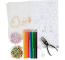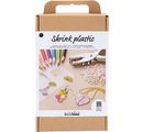 Proszę być kreatywnym i zaprojektować własną biżuterię z zestawem kreatywnym "Biżuteria". Ten zestaw zawiera wszystko, czego potrzeba do stworzenia pierwszych indywidualnych kreacji. Plastikowe płytki termokurczliwe, kolorowe ołówki i akcesoria jubilerskie.
