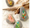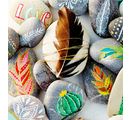 32-stronicowa instrukcja zawiera 12 pomysłów na zaprojektowanie kamieni. Od malowanych kwiatów, kwiatów, piór i powiedzeń po wykorzystanie różnych materiałów, takich jak sznurki, drut i wosk dekoracyjny, prezentowane są stylowe pomysły w stylu boho.