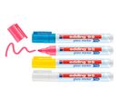 Dzięki zestawom markerów do szkła edding 95 mogą Państwo wielokrotnie tworzyć nowe napisy lub wzory na szkle, szklanych tablicach lub tablicach.