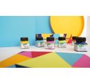 Zestaw matowych farb akrylowych KREUL "Color Living" składa się z 6 kolorów o pojemności 20 ml na kolor. Otrzymają Państwo kolory ciemnoniebieski, złocistożółty, różowy, turkusowy, cytrynowy, karminowy oraz pędzel. Kolory są odporne na światło, ślinę, wodę, warunki atmosferyczne i rozcieńczalne wodą. Nadają się do materiałów takich jak drewno, LED, papier, ceramika, metal i wiele innych.