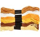 Zestaw nici do haftu "Golden" zawiera 6 nici, każda o długości ok. 8 metrów. Grubość 6-nitkowego doku wynosi ok. 1 mm. Wykonane w 100% z bawełny merceryzowanej o bardzo wysokiej jakości. Nić do haftu ma jedwabisty, połyskujący wygląd.