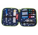 Walizka do szycia w podróży zawiera wszystko, czego potrzeba do szybkich napraw w nagłych wypadkach. Pudełko oferuje różne, świeże kombinacje kolorów i przędzę odpowiednią na każdą okazję. Idealny towarzysz podróży.