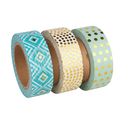 Zestaw taśm washi"Mint/Gold Foil" to ładny zestaw składający się z 3 czarujących rolek taśmy. Wszystkie rolki mają długość 10 metrów. Szerokość wynosi 15 mm. Jest to samoprzylepna taśma z motywem wykonana z papieru.