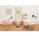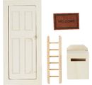 Drzwi, skrzynka na listy i drabina są wykonane z drewna i można je dowolnie ozdobić farbami rzemieślniczymi, brokatem, dekoracyjnym śniegiem, pirografią i nie tylko. W połączeniu z innymi miniaturami, sznurem światełek i małymi jodłami można stworzyć zimową krainę czarów, która zadziwi Państwa w okresie przedświątecznym.