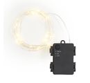 Zewnętrzny łańcuch świetlny mikro LED z wyłącznikiem czasowym, 40 diodami LED i kablem w kolorze srebrnym posiada komorę na baterie odpowiednią do użytku na zewnątrz. Zintegrowany timer pozwala na świecenie ciepłym białym światłem przez 6 godzin i wyłączenie na 18 godzin.