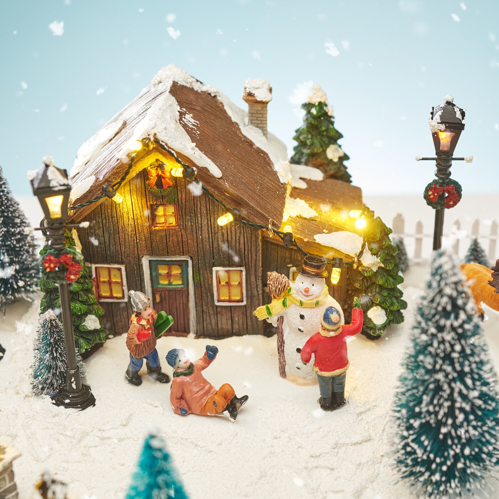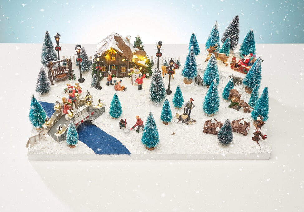 Wyjmij figurki z talerza i pokryj całą powierzchnię dekoracyjnym śniegiem. Ostrożnie umieść figurki w jeszcze mokrym śniegu dekoracyjnym. Dzięki temu po wyschnięciu figurki będą stabilnie stać w krajobrazie i nie będą się ślizgać.
