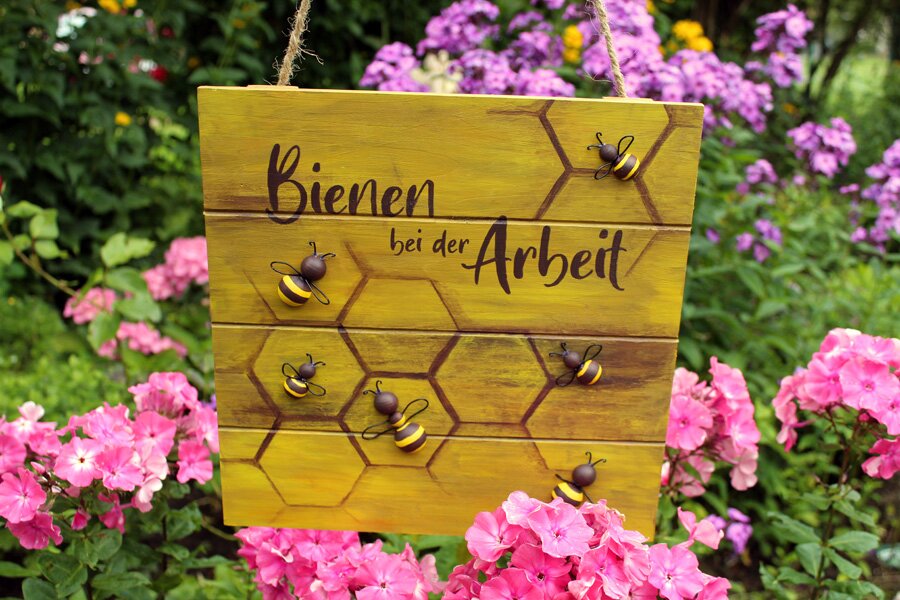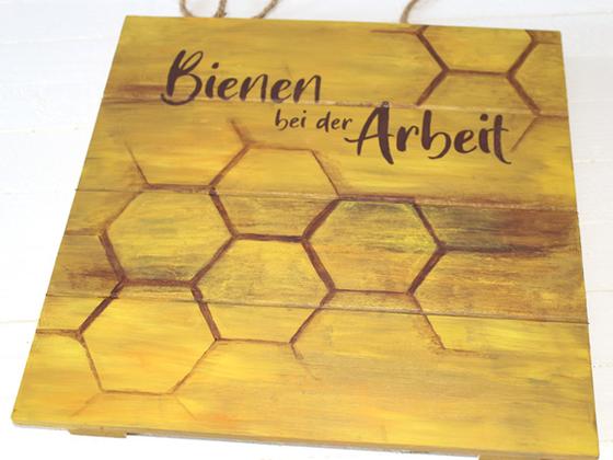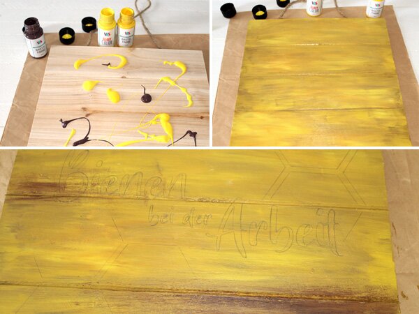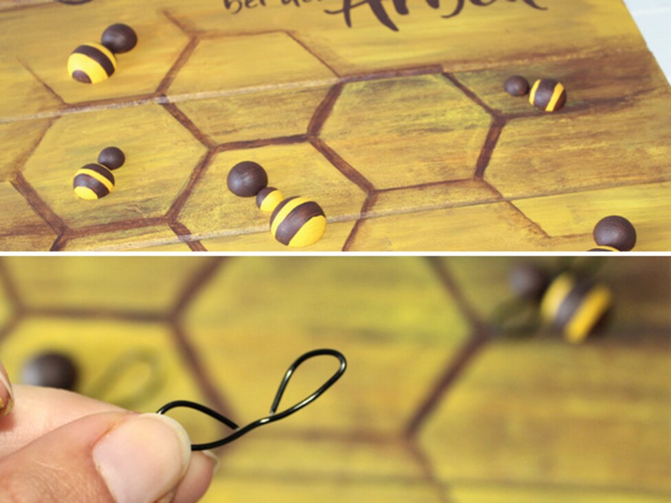 Następnie pozwól wszystkim dokładnie wyschnąć i narysuj napisy i plastry miodu. Możesz to zrobić odręcznie lub skorzystać z szablonów itp.
