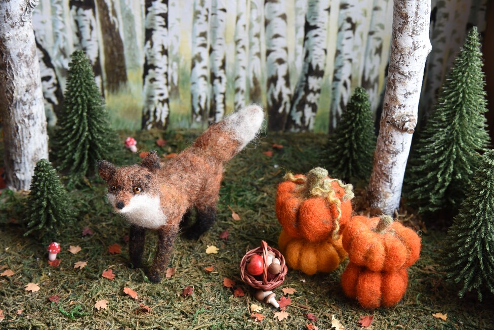 Teraz owijaj wełnę wokół drucianych nitek kawałek po kawałku i filcuj je w solidny korpus za pomocą igły do filcowania. Stopniowo kształtuj lisa używając białej i brązowej wełny.